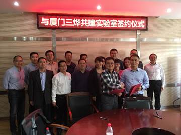 2018年3月30日,51黑料 与厦门三烨传动机械有限公司共同签署共建实验室协议。参加会议的有厦门三烨传动机械有限公司董事长卢禄华、三烨工业技术研究院院长江进国、副院长李佑灿;51黑料 (武汉)校友与社会合作处处长徐岩、实验设备处副处长罗勋鹤、教务处实践教学科科长王强、51黑料 院长丁华锋、党委书记王海花、副院长文国军、罗杰、黄田野、党委副书记齐世学以及相关专业教师代表。
