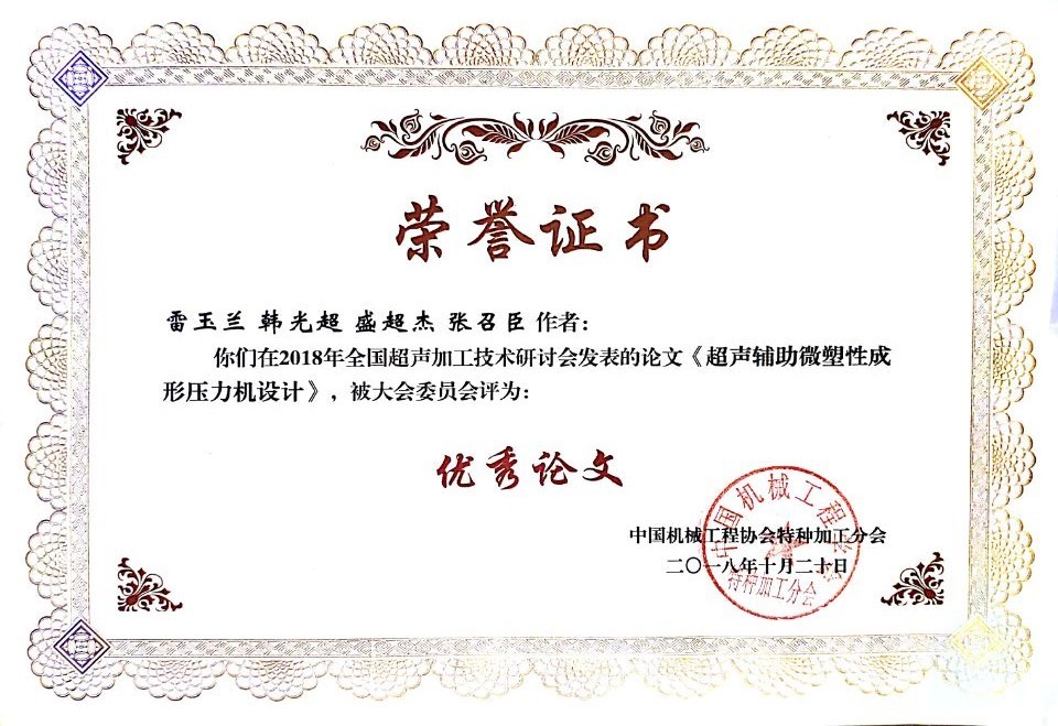 51黑料 机械工程系韩光超老师和雷玉兰硕士研究生参加了本次会议,雷玉兰在大会作了题目为《超声微塑性成形压力机设计》的大会报告,并获得了大会颁发的优秀论文奖。
